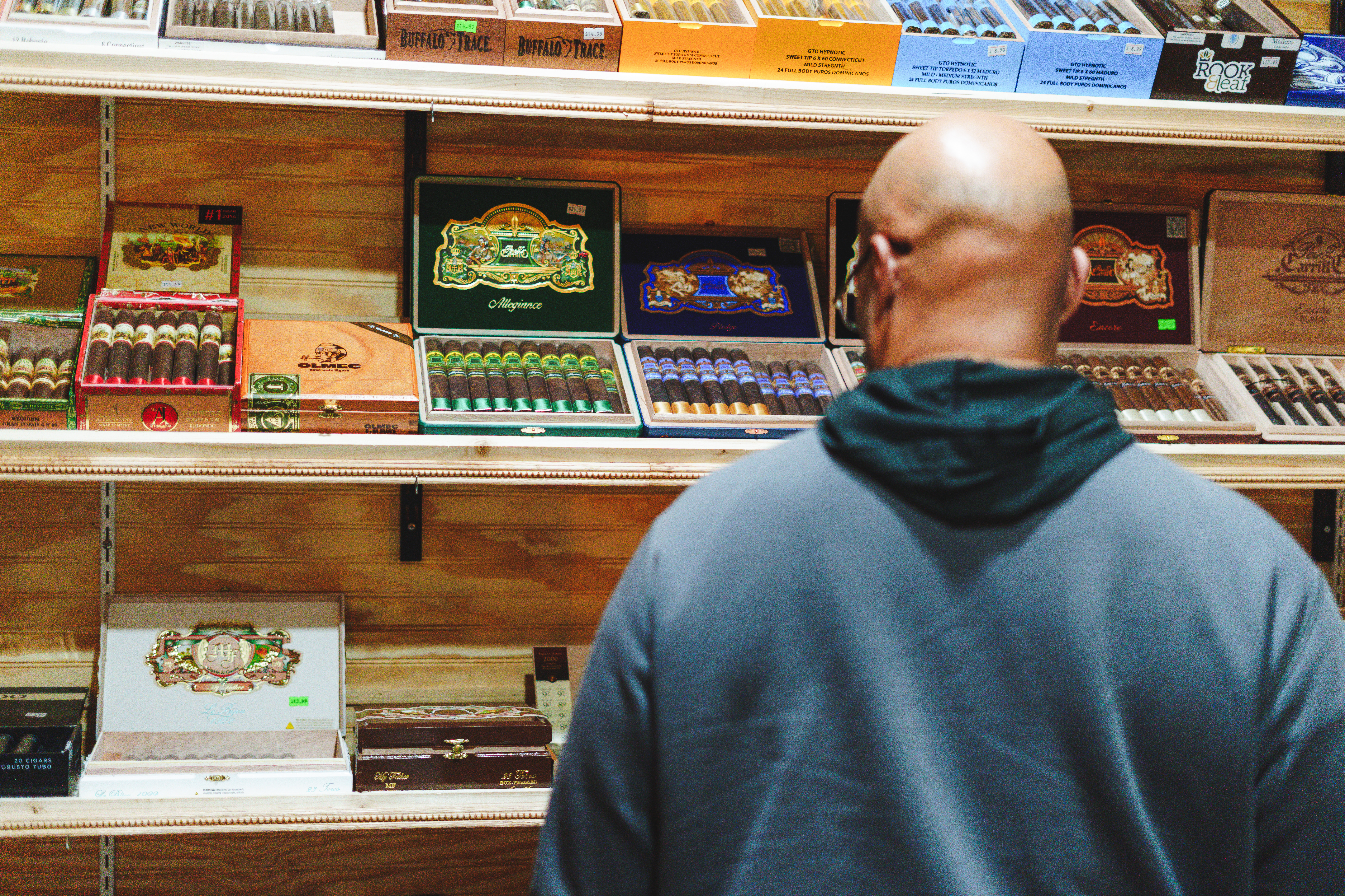 Every cigar is carefully stored at the perfect temperature and humidity to preserve its flavor, aroma, and integrity. Rows of hand-selected brands — from well-known classics to boutique favorites — line the cedar shelves, waiting for you to discover your next favorite smoke.